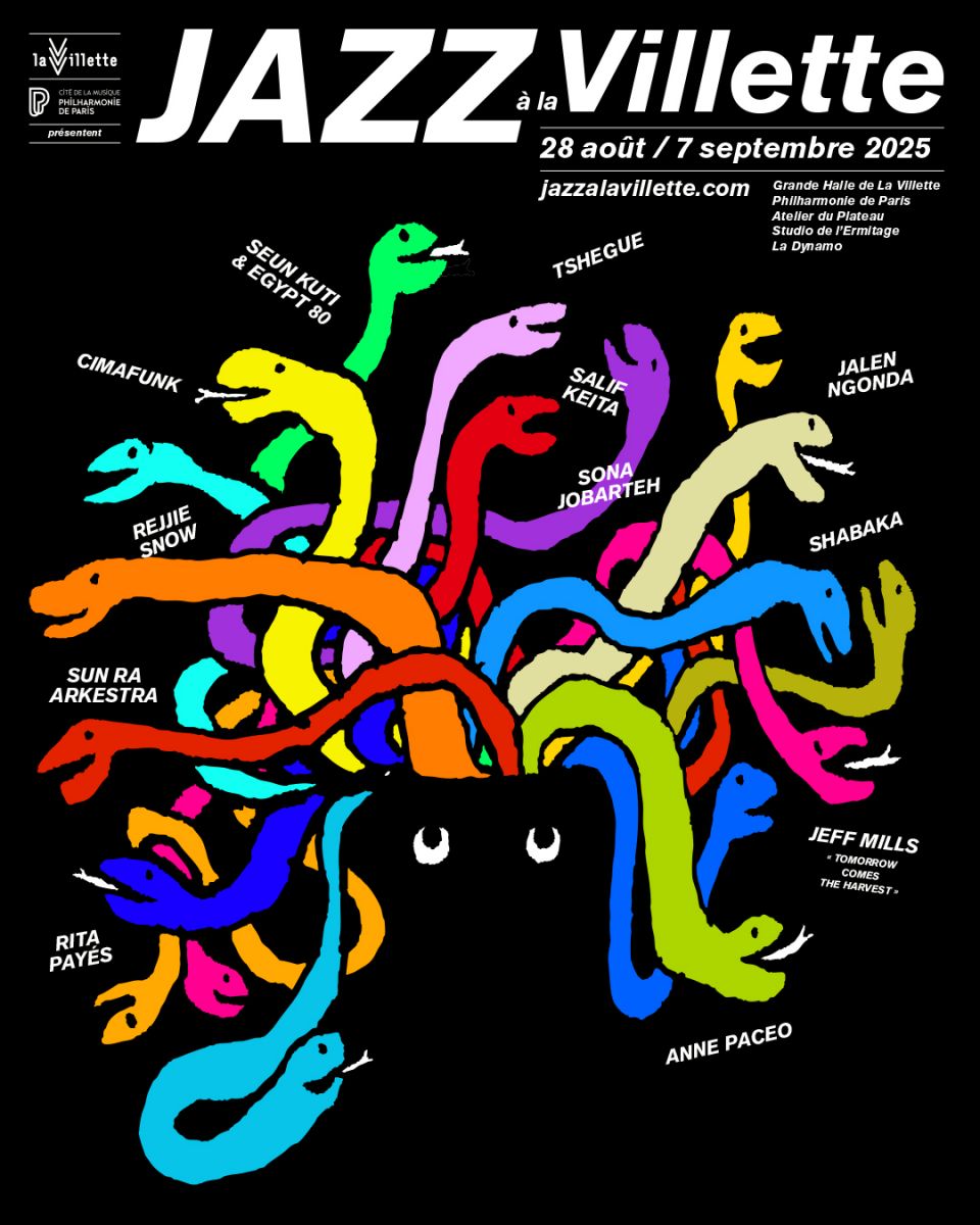 15th edition of graphic design complicity for Hartland Villa with the Jazz à la Villette festival on the stages of the Philharmonie de Paris and the Cité de la Musique from Thursday August 29 to Sunday September 8. On the menu ? Brad Mehldau, Delgres, Mahalia, Alice Russell, Kenny Garrett, Tinariwen or even the project The Strangers (General Elektriks, Leeroy, Lateef the Truthspeaker) without forgetting Omar, Curtis Harding, Knower...
