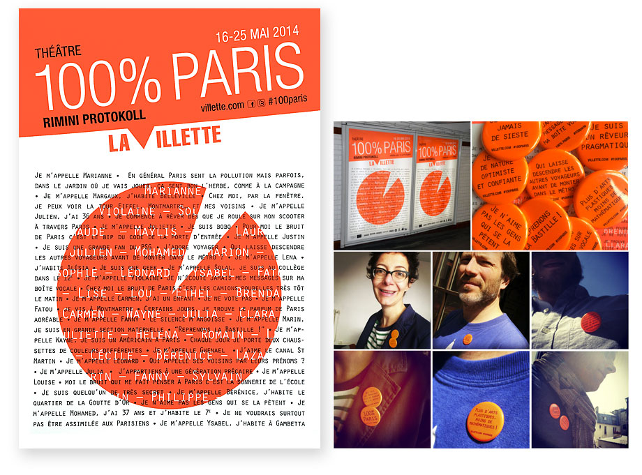Un regard sur l’impact économique, politique et social généré par les études statistiques sur les populations. Que se passerait-il si les 2 243 833 habitants de la capitale étaient représentés par 100 Parisiens. Après une vaste enquête conduite par la compagnie Rimini Protokoll, 100 Parisiens ont été choisis pour monter sur scène et vous faire découvrir les traits concrets, sensibles et surprenants de Paris aujourd’hui. C’était la forme théâtrale étonnante que proposait le parc de la Villette en mai dernier et à laquelle nous étions heureux d’être associés.